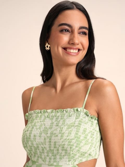Be the first to review “OnlyTrend Green & Off-White Checked Shoulder Strap Cut-Outs A-Line Dress”