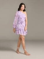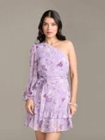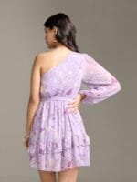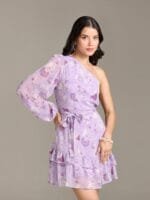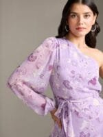 - Purple floral print a-line dress