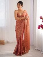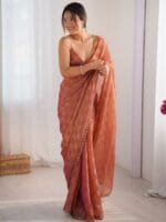 • Rust and beige saree