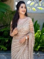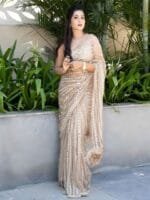 - Nude-coloured and silver-toned saree