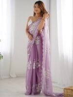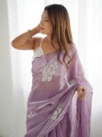 - Lavender and white saree