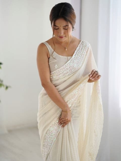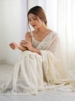 The blouse worn by the model might be for modelling purpose only. Check the image of the blouse piece to understand how the actual blouse piece looks like.