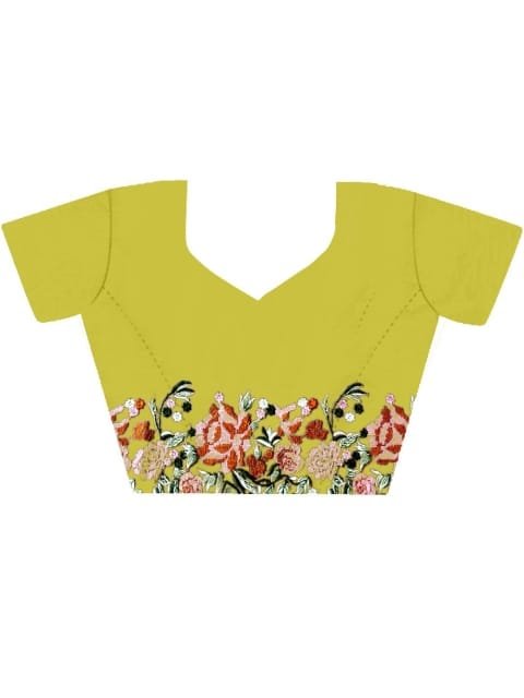 The blouse worn by the model might be for modelling purpose only. Check the image of the blouse piece to understand how the actual blouse piece looks like.
