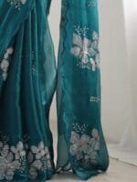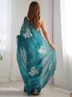 - Teal and white saree