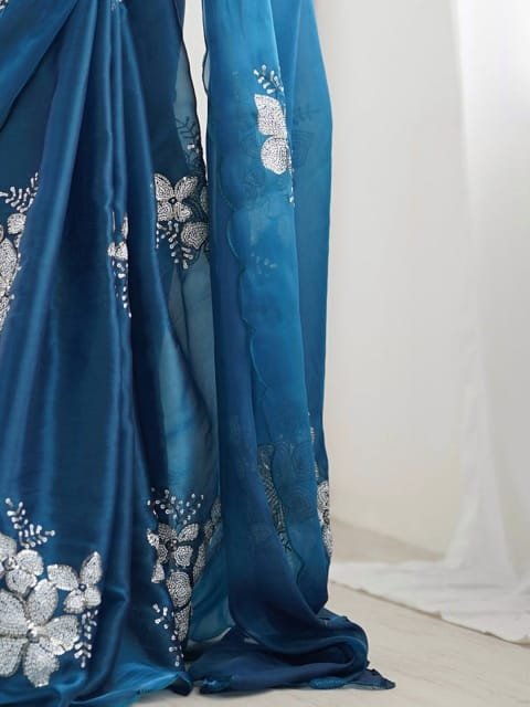 - Floral embellished saree with no border