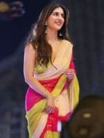 The blouse worn by the model might be for modelling purpose only. Check the image of the blouse piece to understand how the actual blouse piece looks like.