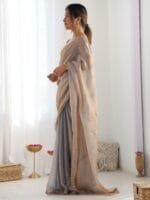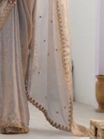 • Metallic-toned and beige saree