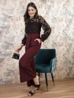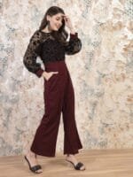 Its awesome 😎….I have purchased the L size…The fitting is perfect…its Navy blue and black colour.it has designer sleeves which give a perfect look to this jumpsuit..it has a stretchable material..i m Loving it..you guys can buy..its worth the price!