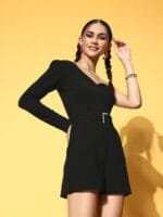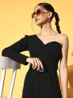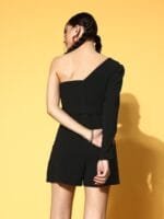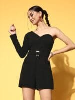 If you love a simple one-and-done look, this chic jumpsuit is the right choice. This attractive jumpsuit features a solid pattern and a well-tailored one-shoulder design.