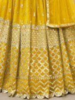 Yellow and gold-toned embroidered semi-stitched lehenga, flared hem