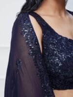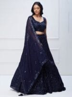 🥰osm quality of fabric of lehanga &thread and sequence intricate embroidery makes it more elegant🥰one didn’t like the dupatta in the images the color of the dupatta is navy blue but I got black color dupatta which was a disappointment for me overall a nice product go for it👍