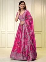 Lehenga(Semi-Stitched) Flair : 3.50 mtr, waist-43″, height-43″; Blouse(Unstitched) : 1.0 mtr”; Dupatta Length: 2.50 mtr