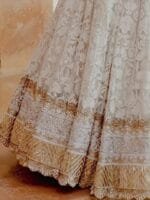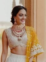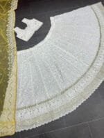 White and yellow embroidered lehenga choli with dupatta, sequinned