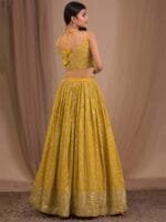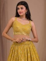 Yellow and gold-toned embroidered lehenga choli with dupatta, sequinned