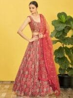 Lehenga(Semi-Stitched) Flair : 3.50 mtr, waist-1.09 mtr, height- 1.09 mtr
