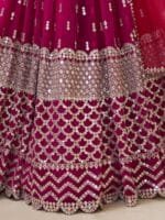 Pink and gold-toned embroidered lehenga choli with dupatta, sequinned