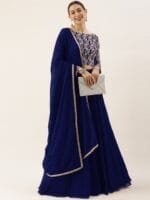 Navy Blue and gold-toned embroidered lehenga choli with dupatta, thread work