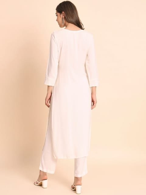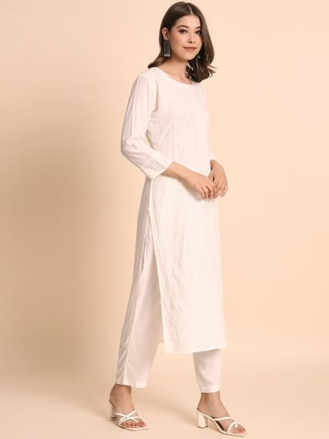 OnlyTrend Floral Embroidered Round Neck Chikankari Regular Kurta