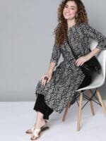 2 reviews for OnlyTrend Women Black & White Paisley Printed Kurta