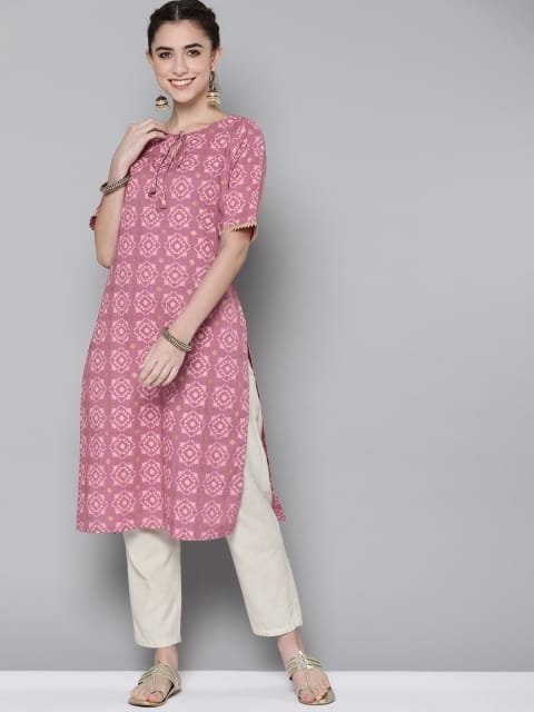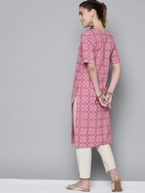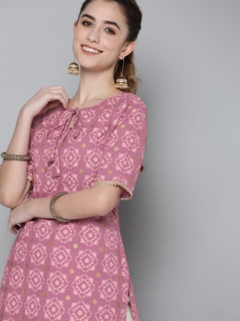 OnlyTrend Women Pink Geometric Printed Kurta