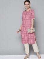 3 reviews for OnlyTrend Women Pink Geometric Printed Kurta