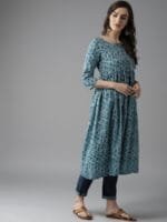 Show off your elegant style with a brand new kurta from HERE&NOW. Dress up for your next family event by pairing this blue piece with your best Kolhapuris and simple jewellery.
