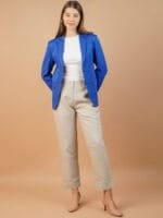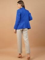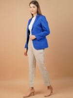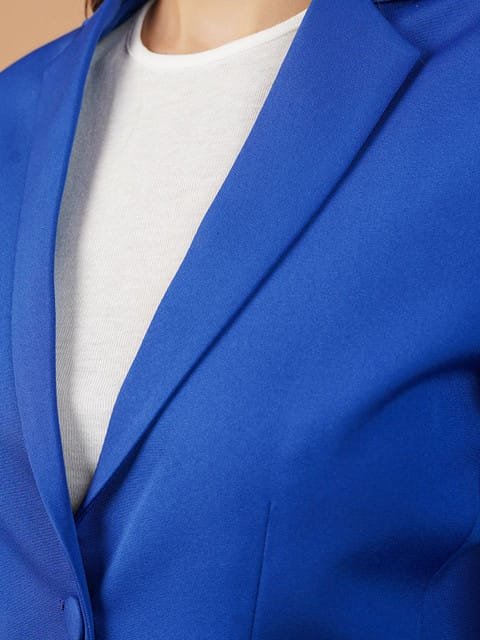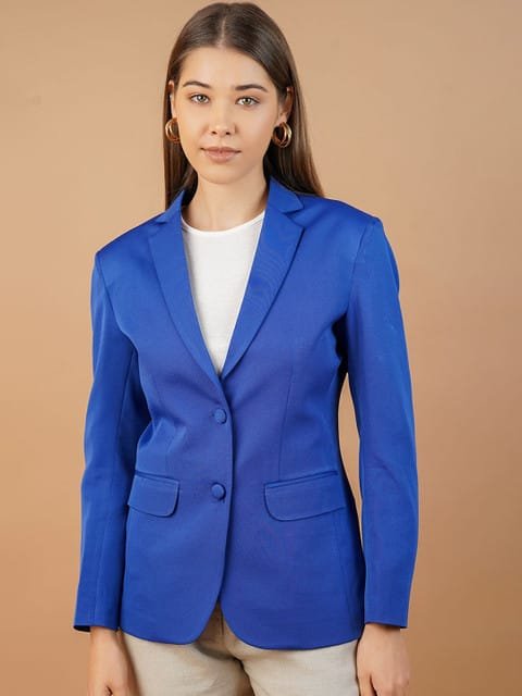 Blue solid regular-fit casual blazer, has a notched lapel, long sleeves, single-breasted with double button closure, two flap pockets and a single-vented back hem