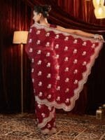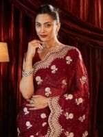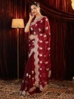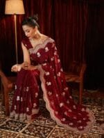- Maroon and gold-toned saree