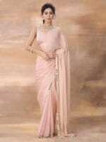 Kasee’s ethnic Embellished net saree is perfect for enhancing your look this summer season. The fabric and embroidery allow maximum airflow, keeping you cool and comfortable when the temperature rises. Just a light blouse piece and this saree is all you need to dress up or down for the hot summer days ahead in effortless Indian style.