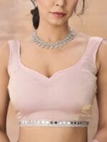 The blouse worn by the model might be for modelling purpose only. Check the image of the blouse piece to understand how the actual blouse piece looks like.