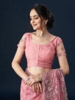 The blouse worn by the model might be for modelling purpose only. Check the image of the blouse piece to understand how the actual blouse piece looks like.