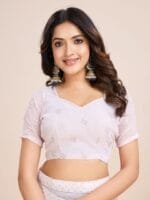 The blouse worn by the model might be for modelling purpose only. Check the image of the blouse piece to understand how the actual blouse piece looks like.