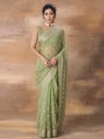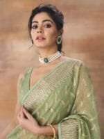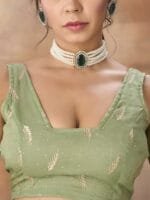 The blouse worn by the model might be for modelling purpose only. Check the image of the blouse piece to understand how the actual blouse piece looks like.