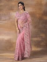 • Floral embroidered saree with embellished border