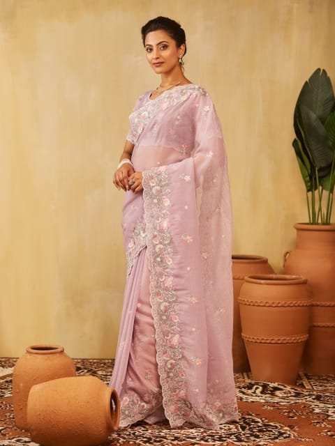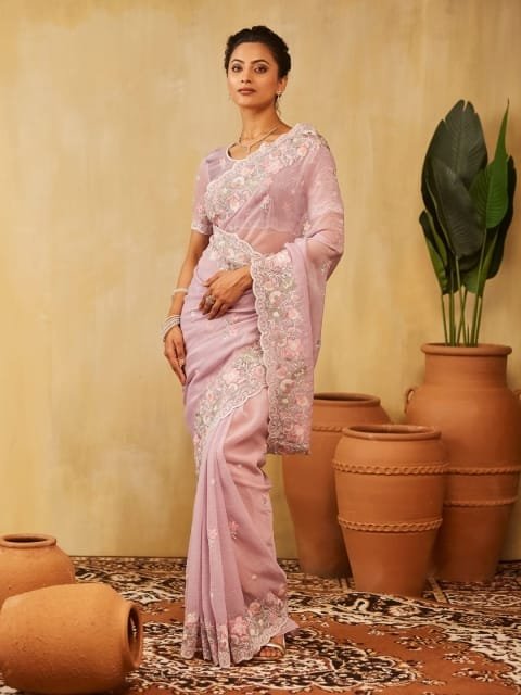 • Lavender and pink saree
