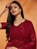 - floral embroidered saree with embroidered border