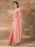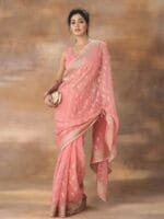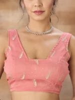 The blouse worn by the model might be for modelling purpose only. Check the image of the blouse piece to understand how the actual blouse piece looks like.