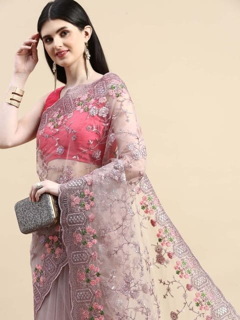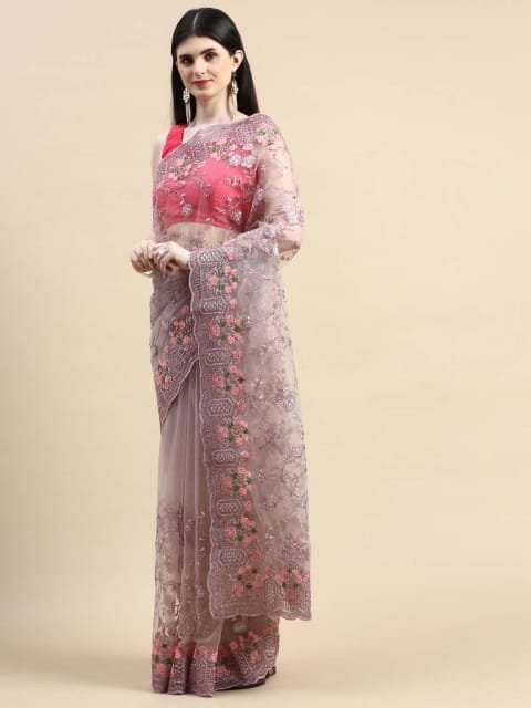 - Floral embroidered saree with embroidered borderΒ