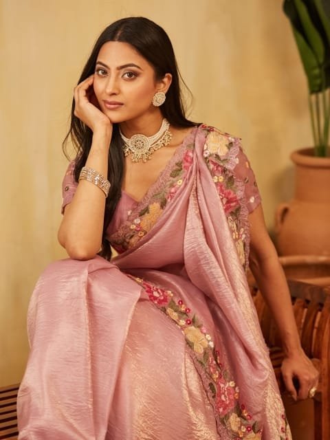 - Pink and yellow saree
