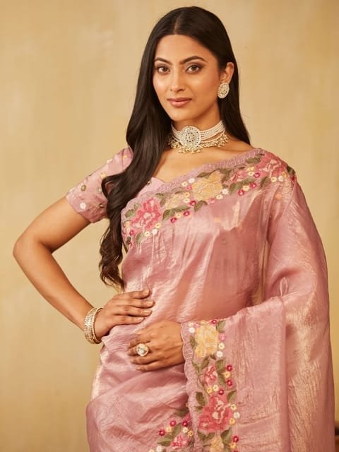 - Solid embroidered saree with embroidered border