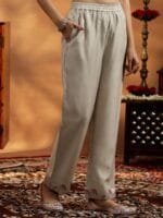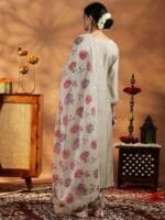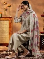 Beige and pink Embroidered kurta with trousers and dupatta