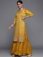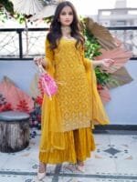 Mustard yellow embroidered Kurta with Sharara & dupatta