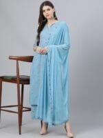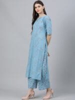 Crafted with stunning design in mind, this blue kurta set from Libas will become your new closet favorite. Wear this kurta set to evening events, pairing it with stunning, gold jewellery and accessories.