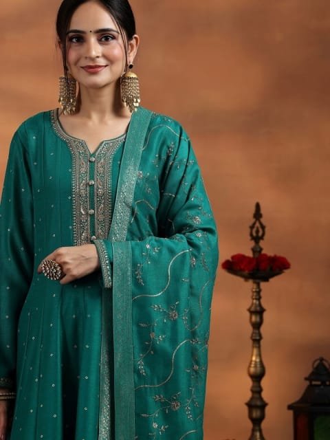 Green embroidered Kurta with Trousers with dupatta