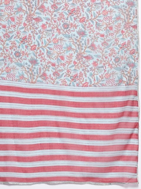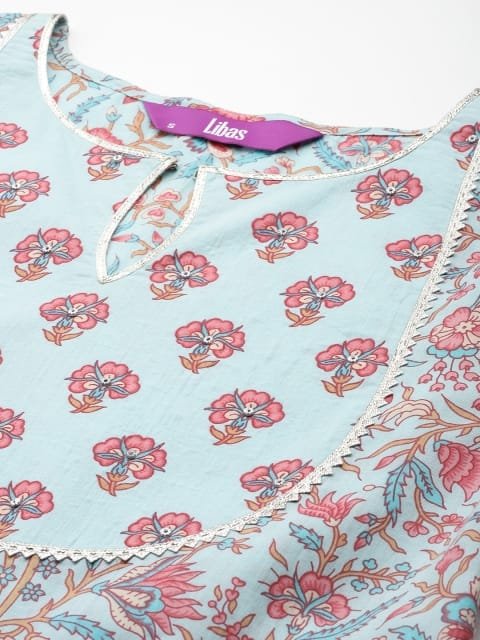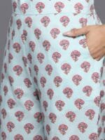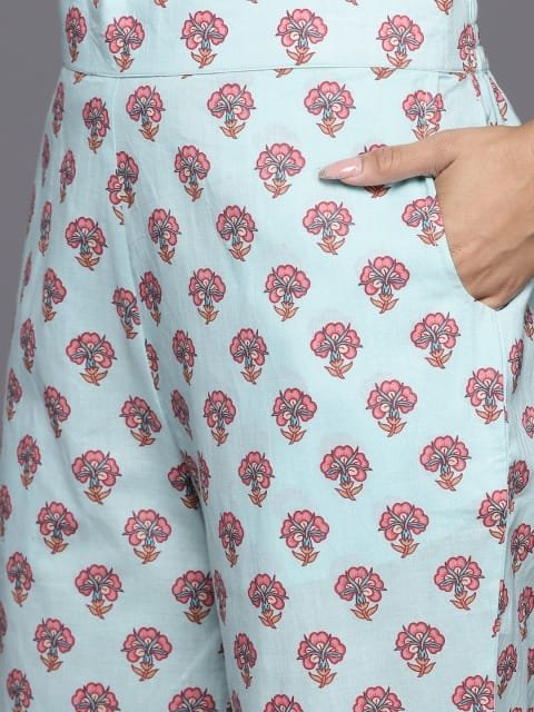Turquoise blue printed Kurta with Trousers with dupatta