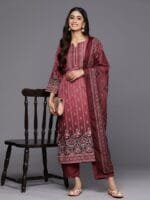 Maroon printed Kurta with Trousers with dupatta