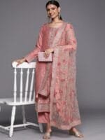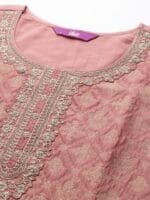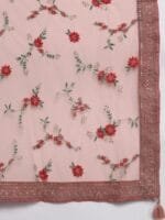 Peach-coloured woven design Kurta with Trousers with dupatta