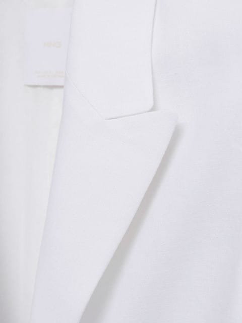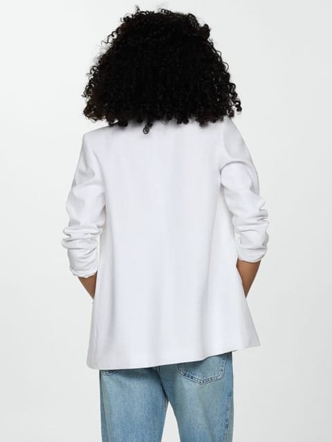 White solid peaked lapel collar straight fit, single-breasted blazer with long sleeves and two flap pockets and a button closer