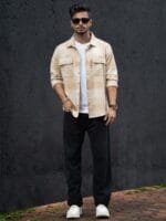 Beige opaque casual shirt