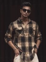 Black tartan checks checked opaque Casual shirt ,has a spread collar, button placket, 2 flap pocket, long regular sleeves, straight hem